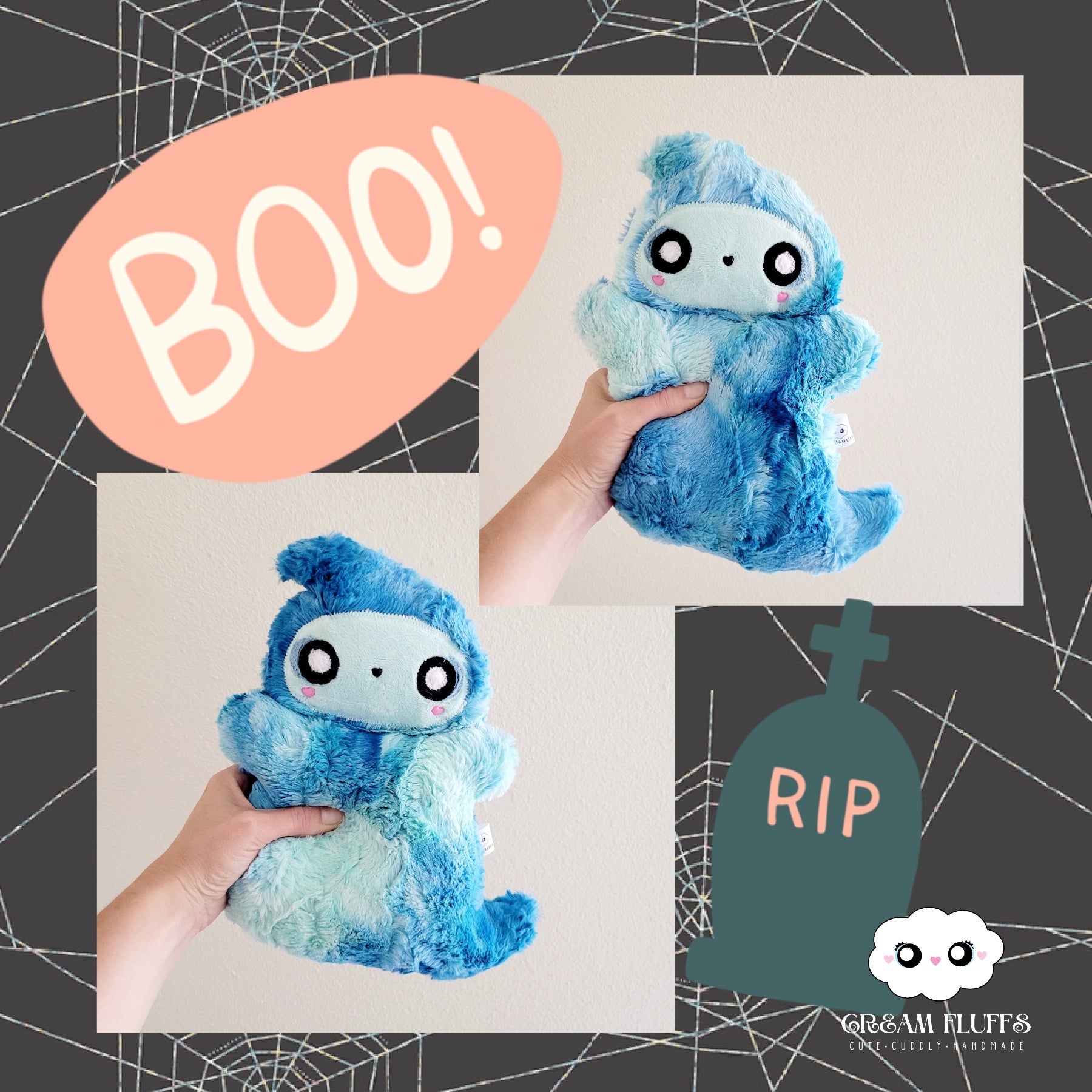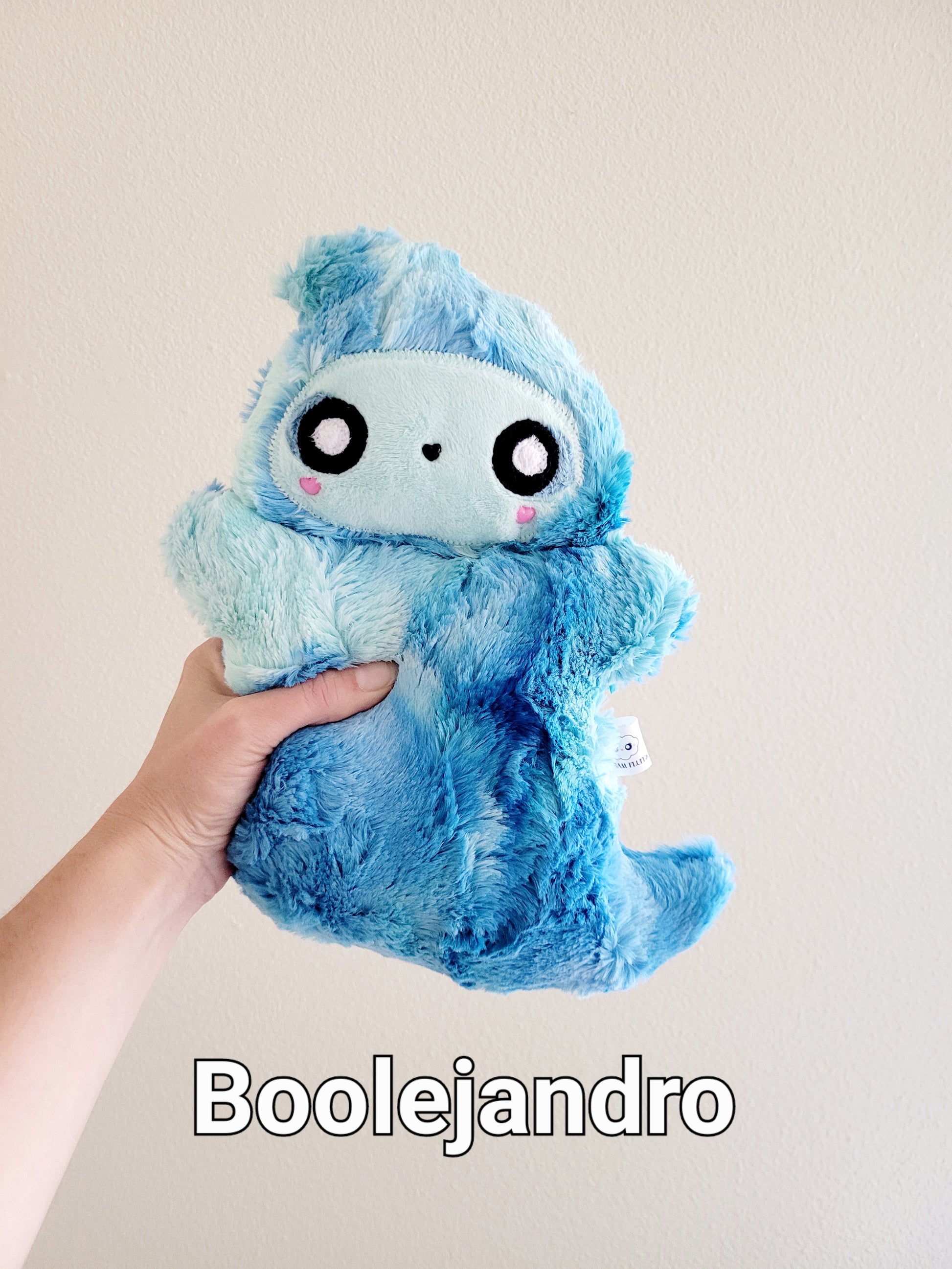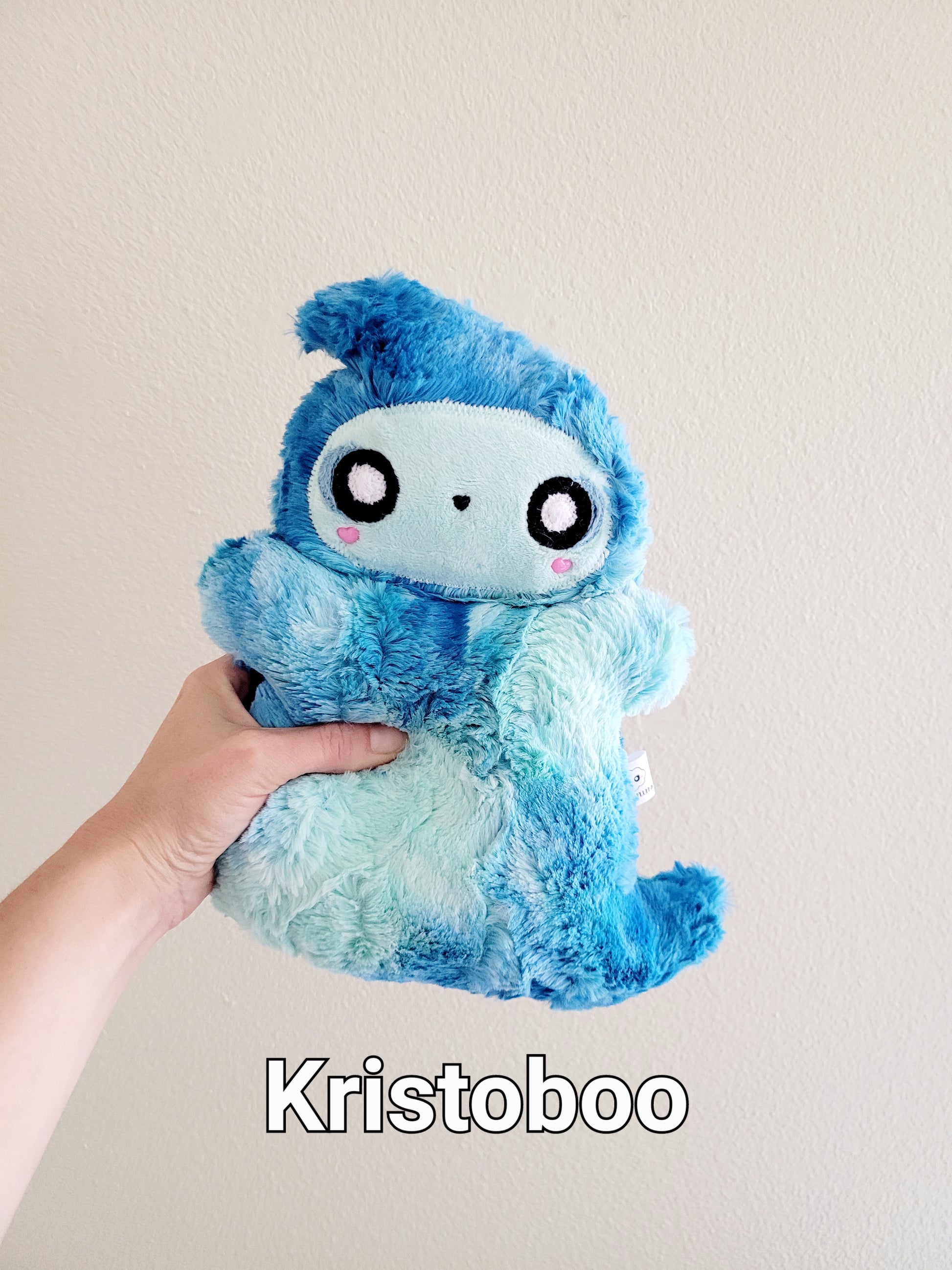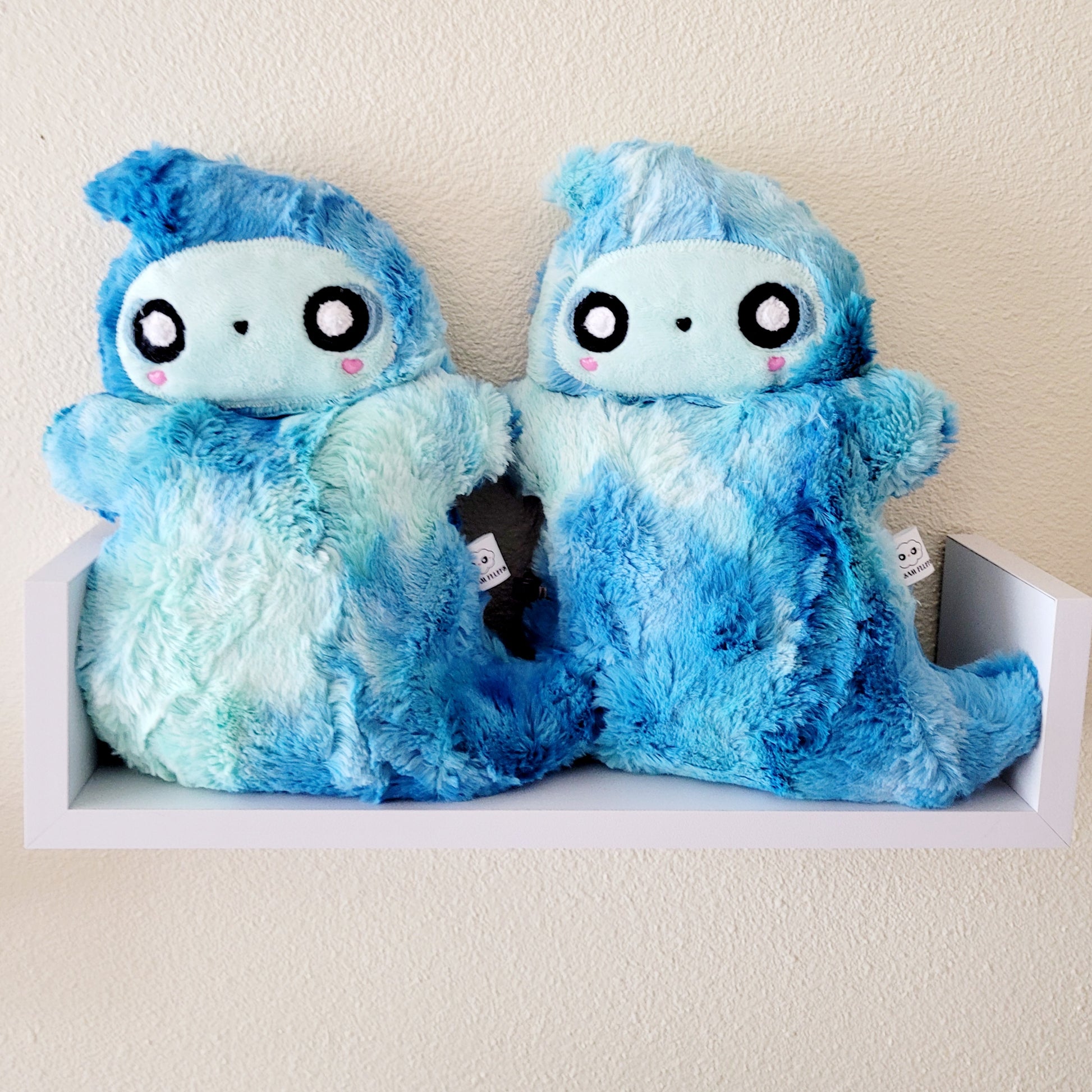 Meet Kristoboo and Boolejandro! They are They are made with luxe cuddle blue glow sorbet and filled with allergy friendly Polyfil and weighted poly pellets. They are bitty Cream Fluffs at approximately 10".