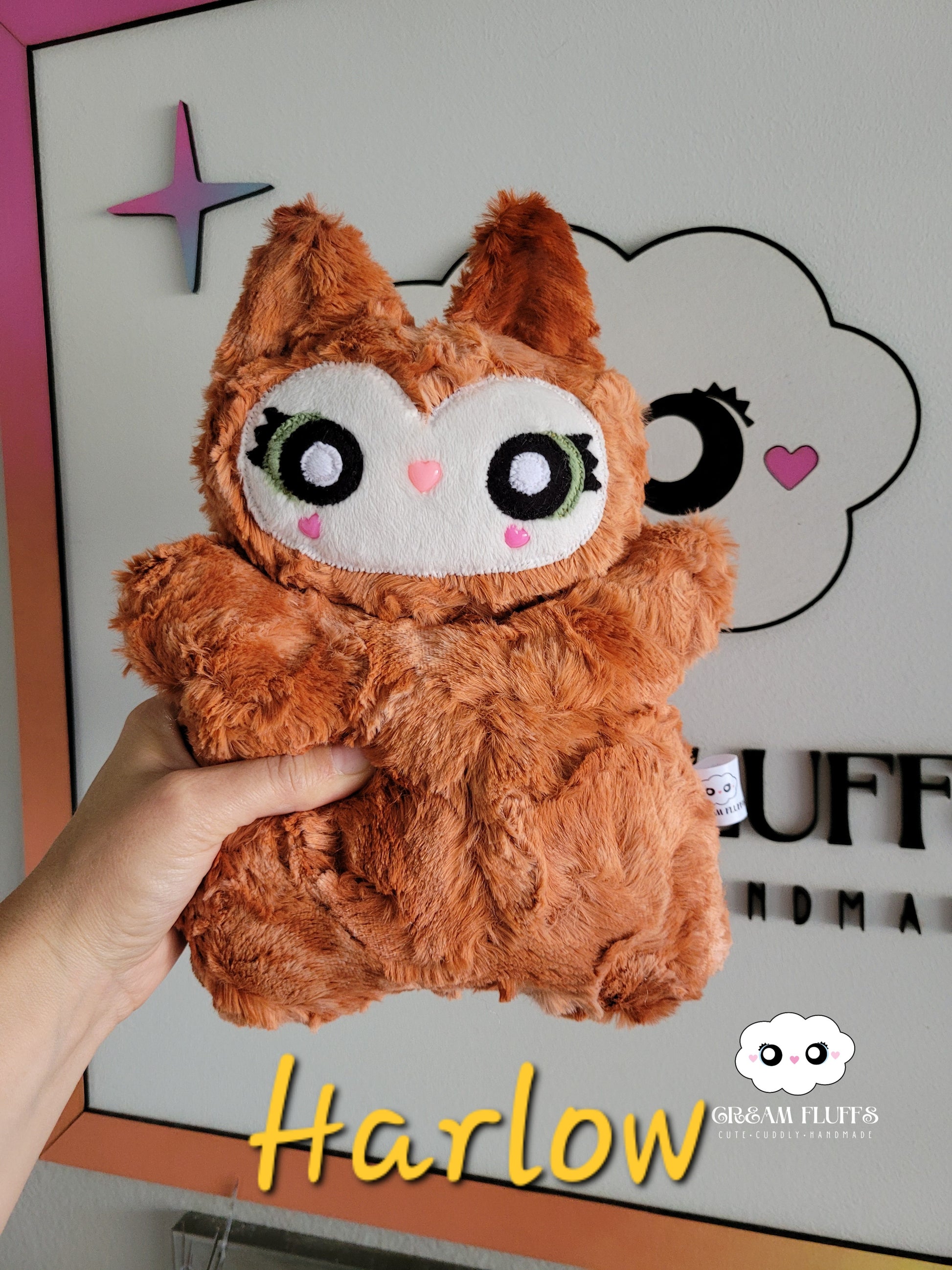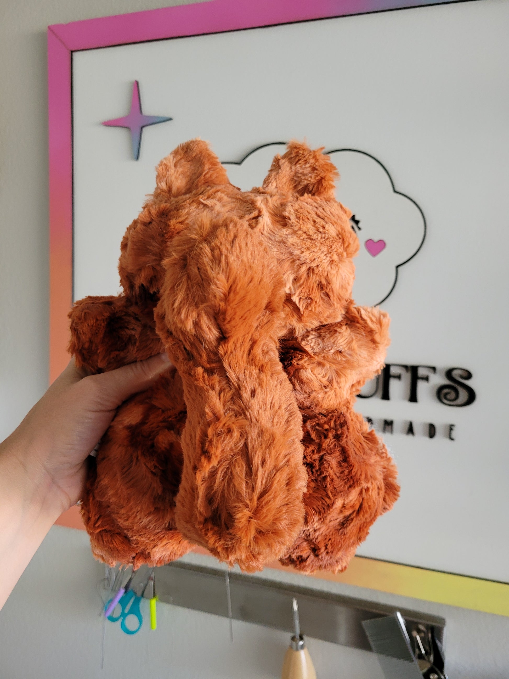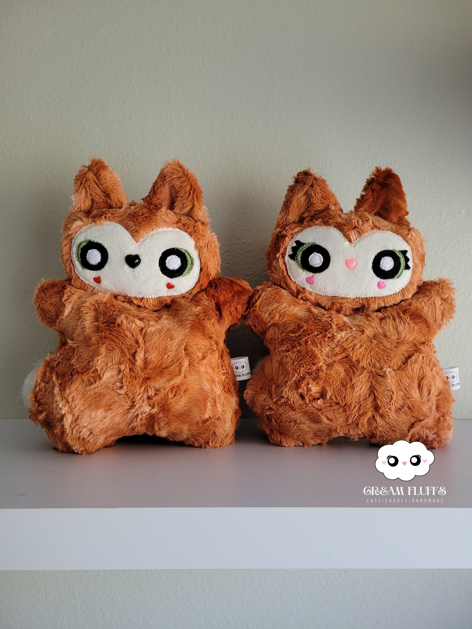 Bitty Squirrels are made luxe cuddle hide and filled with allergy friendly Polyfil and weighted poly pellets.