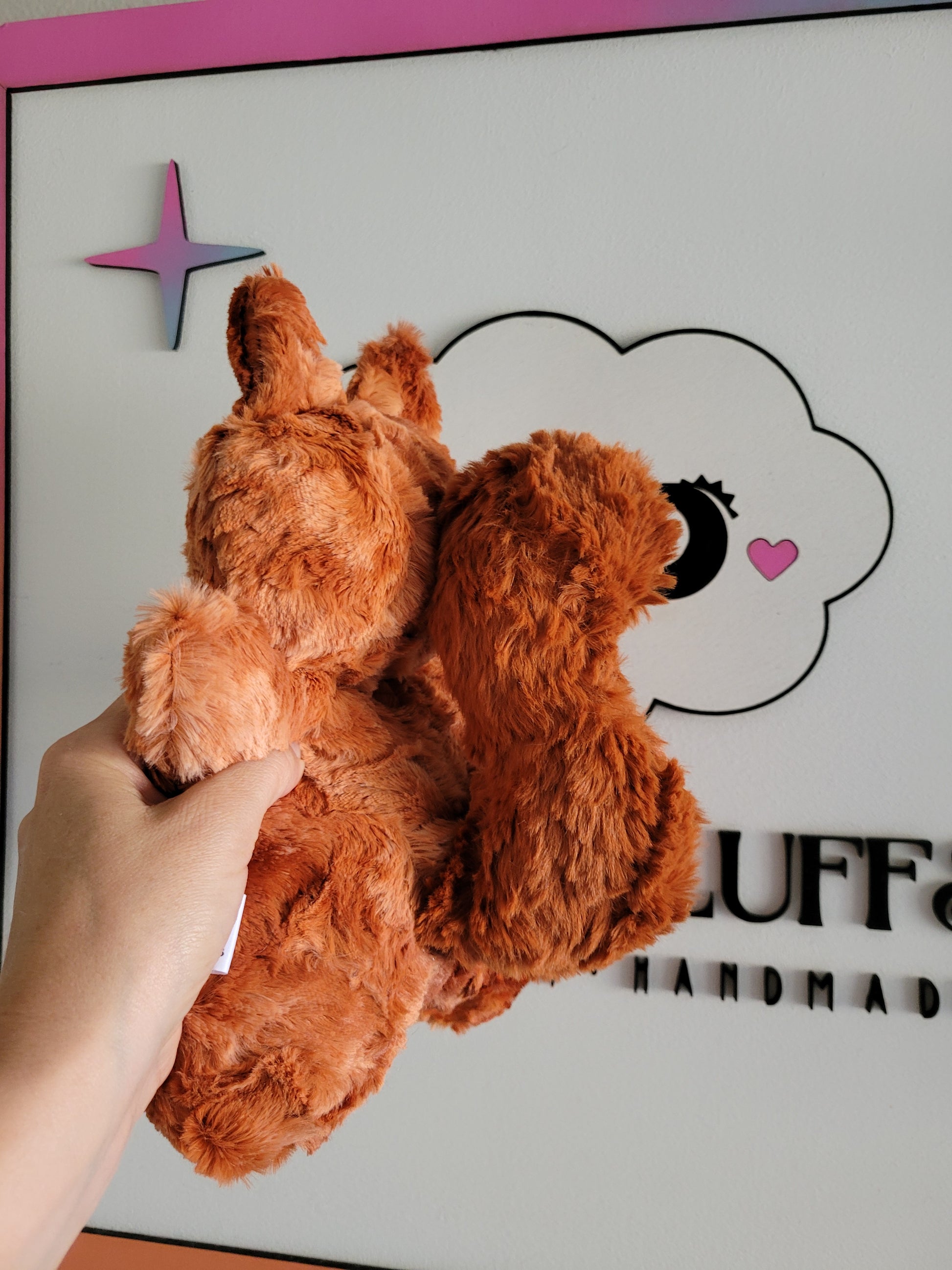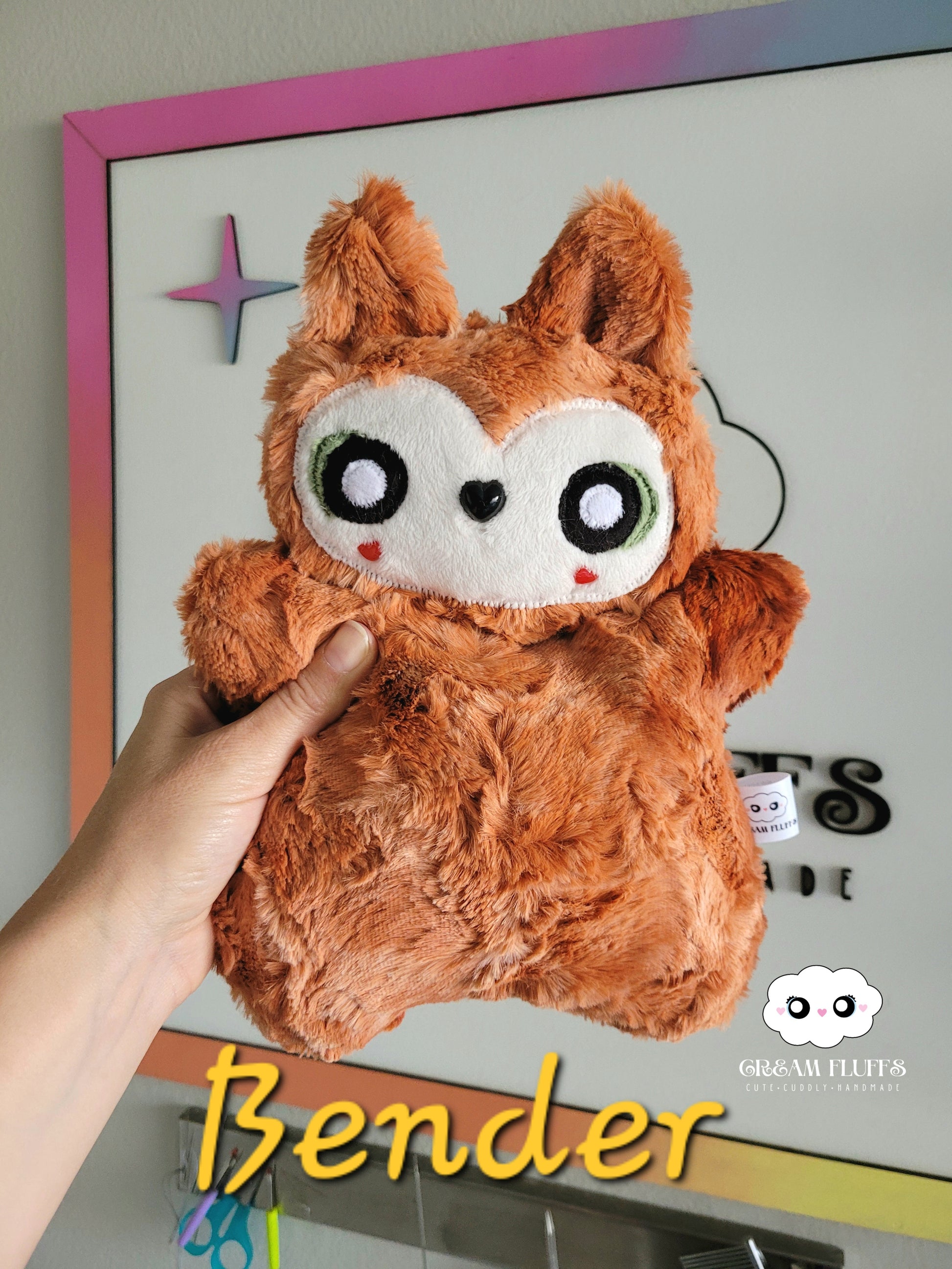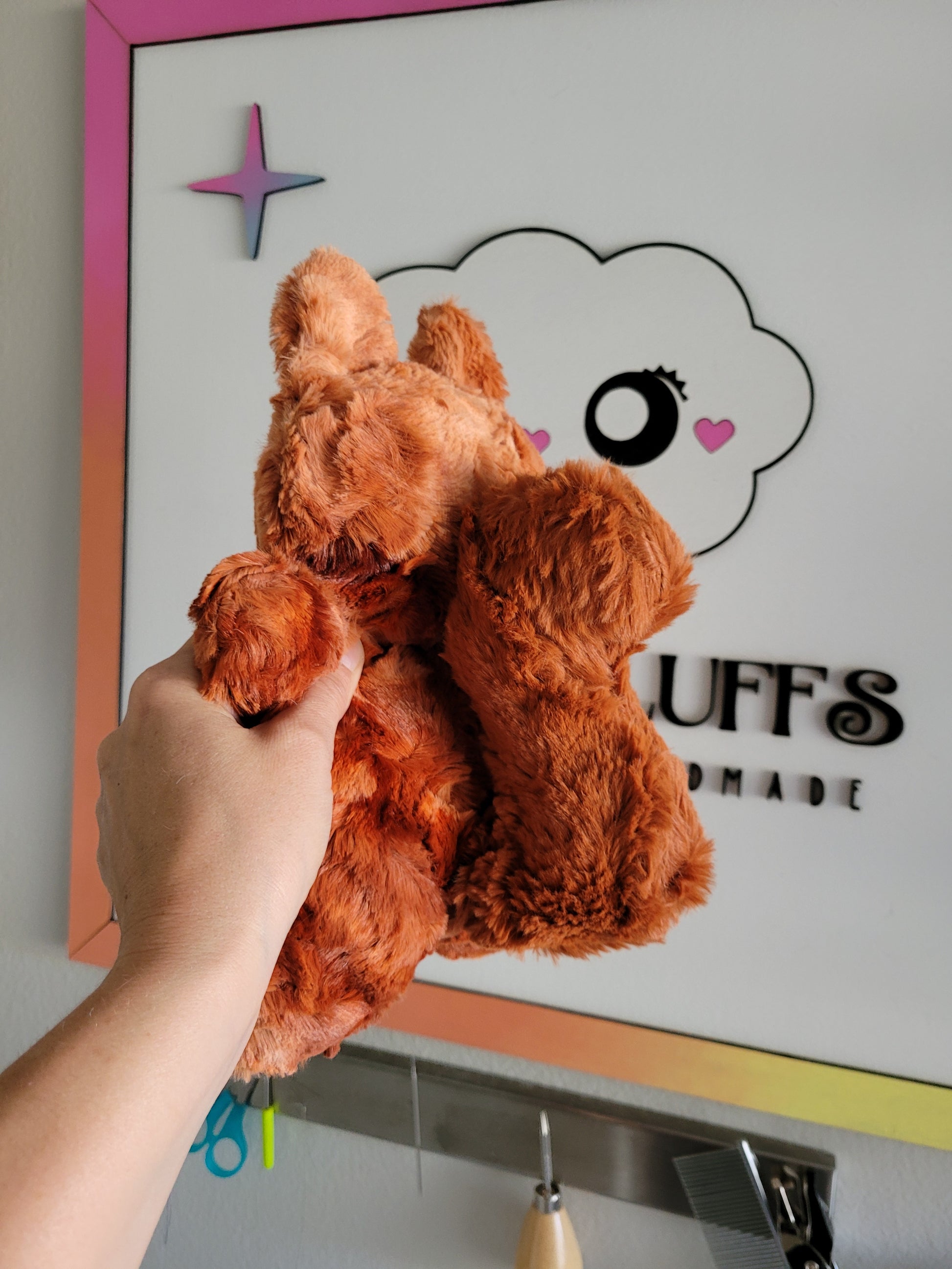 Bitty Squirrels are made luxe cuddle hide and filled with allergy friendly Polyfil and weighted poly pellets.