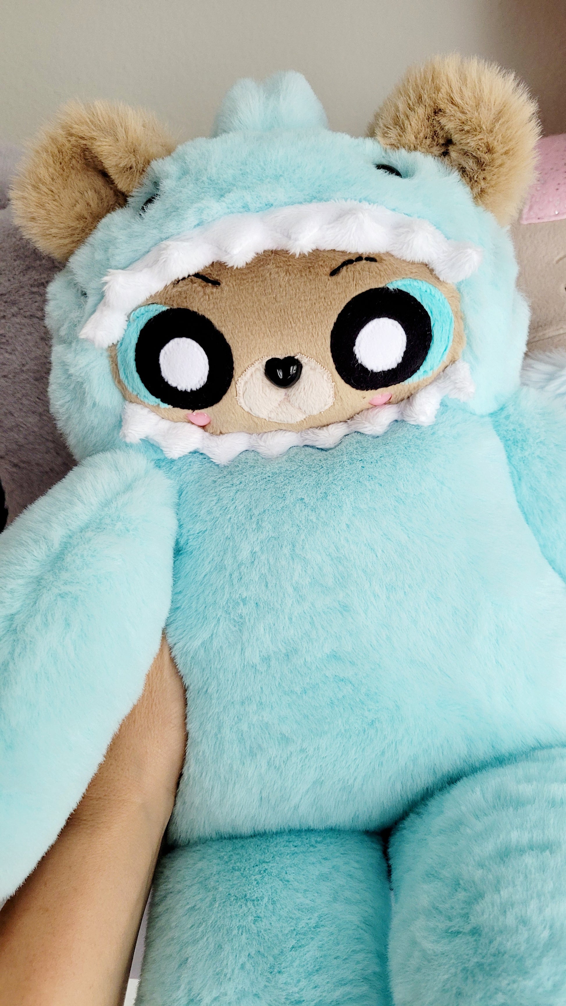Care: I reccomend spot cleaning your fluffy friend and avoiding rough play as it is a handmade item.