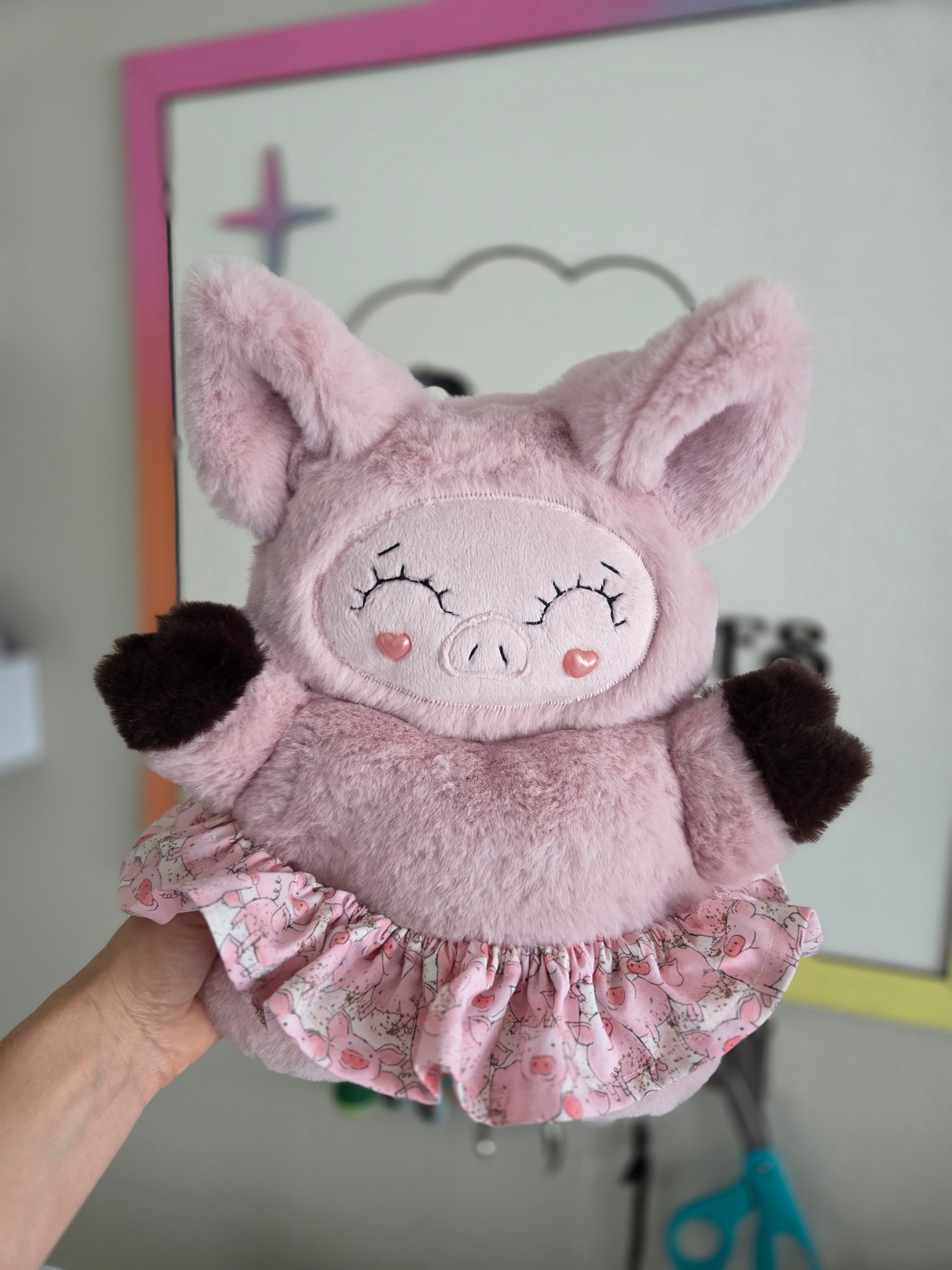 Plush is Shannon luxe cuddle seal fabric. Skirt is 100% Cotton muddy piggy fabric.