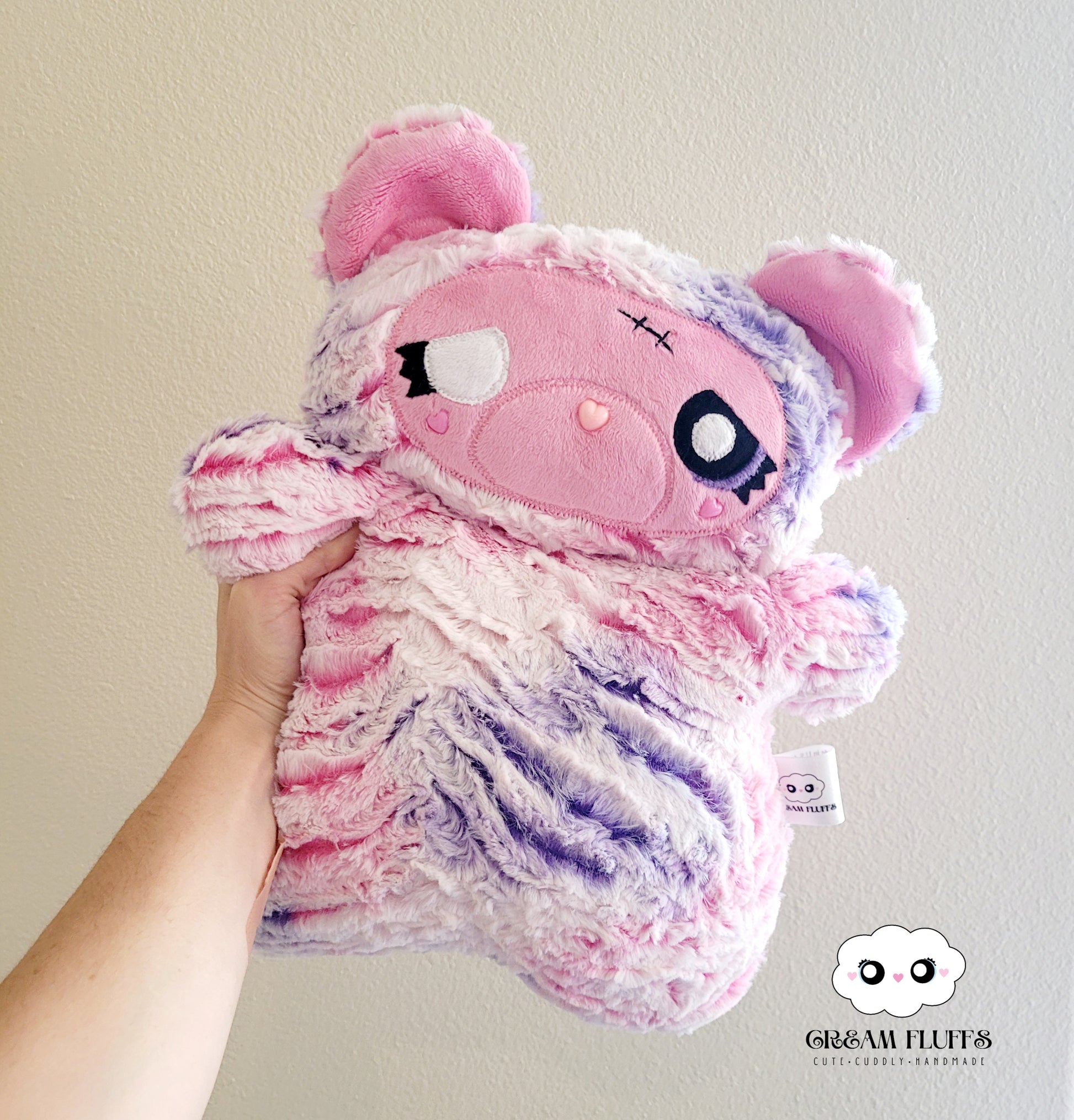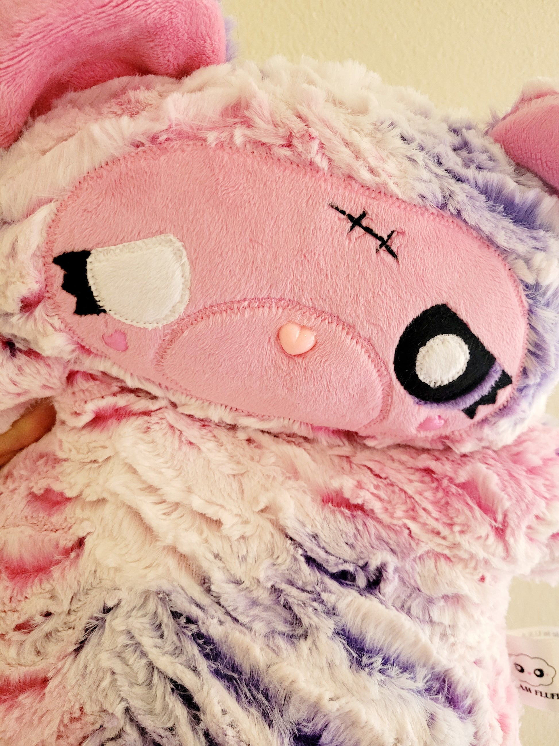 Meet Zoe! She's made with luxe cuddle prism slumber party! She's filled with allergy friendly Polyfil and weighted poly pellets. She's a midi Cream Fluff at approximately 13".